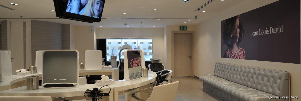 Ce salon, très luxueux, s’étend sur plus de 2 000m2. Un lieu consacré à la beauté et la détente qui se compose de deux espaces bien distincts. Un premier, au rez-de-chaussée, avec le spa. Massages, soins, relaxation… Vous êtes invitée à vous détendre et vous délasser. A l’étage, accessible par un ascenseur privé, vous tomberez nez à nez avec le salon Jean Louis David de plus de 1 000 m2 où 50 places de coiffage sont disponibles.