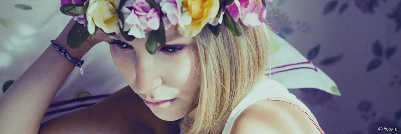La couronne de fleurs vous confère au premier coup d’oeil un style romantique ou bohème. On la porte alors avec une longue robe vaporeuse et sur des coiffures faussement floues. Par exemple, sur des cheveux longs légèrement ondulés et brillants. Ou encore sur une tresse très lâche.