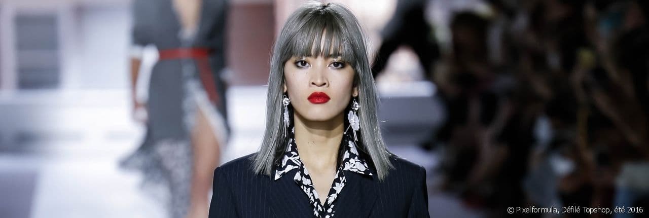 Adoptés sur les podiums, par les stars et jusque dans la rue, les cheveux gris sont la nouvelle coloration en vogue. N’ayez pas peur : bien maîtrisée, cette couleur est idéale pour doper un style classique ! Une coloration silver vous fait rêver ? Si le résultat est canon sur canon sur des longueurs XXL, l’entretien peut être fastidieux. Préférez plutôt une coupe dynamique : à la garçonne, avec une frange ou un carré long. Le must pour que la couleur ressorte. Côté make-up, craquez pour un rouge à lèvre rouge ou bordeaux, finition mate pour une allure rock.