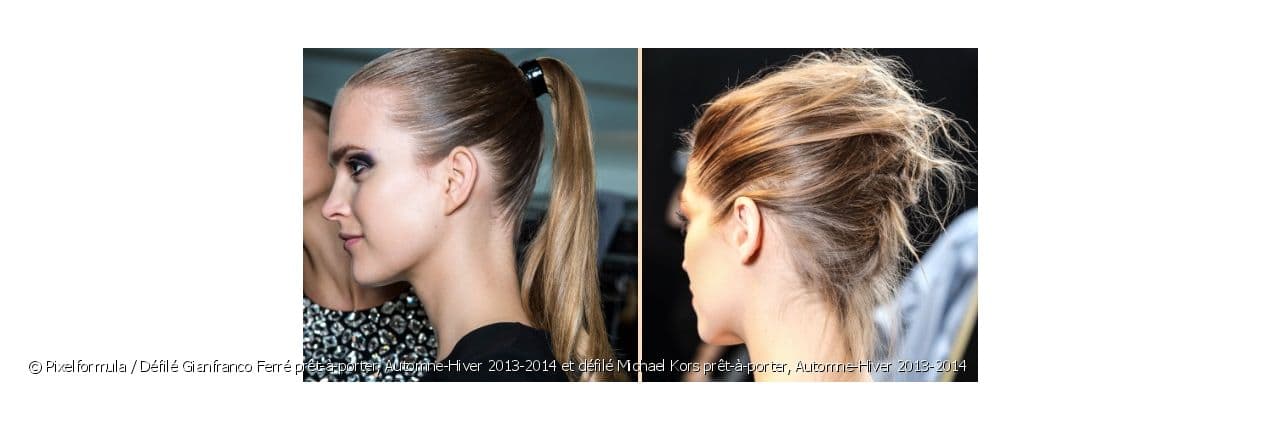 Sur le défilé Michael Kors, la queue-de-cheval est haute et particulièrement tirée. Fidèle à la tendance de l’hiver qui veut que le visage soit dégagé, cette coiffure est idéale. Cependant, plutôt que de miser sur une coiffure ultra-lisse, celle-ci affiche un effet torsadé sur les pointes. Pour réaliser cette coiffure, rien de plus simple. Commencez par lisser vos cheveux à l’aide d’un fer à lisser. Une fois le lissage terminé, nouez la totalité de vos cheveux en une queue-de-cheval haute à l’aide d’un élastique à crochets. Une fois la queue-de-cheval réalisée, munissez-vous d’un fer à boucler afin de créer les torsades au niveau des demi-longueurs et pointes de la queue-de-cheval.